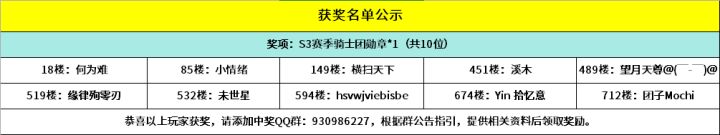 -------------------------------------------------------------(中奖名单)--------------------------------------------------------恭喜以下幸运的小骑士获得活动奖励,请中奖的小骑士添加获奖群:930986227,请加获奖群后,登记相关获奖信息,超过15个自然日未进群未登记视为放弃奖励~