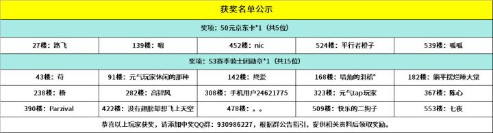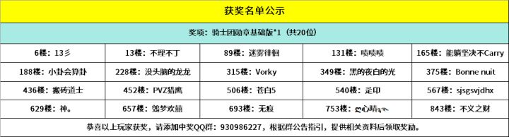 -------------------------------------------------------------(中奖名单)--------------------------------------------------------恭喜以下幸运的小骑士获得活动奖励,请中奖的小骑士添加获奖群:930986227,请加获奖群后,登记相关获奖信息,超过15个自然日未进群未登记视为放弃奖励~