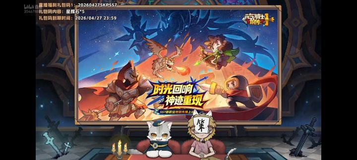 小骑士们好,SS7时光赛季的前瞻直播大家都有观看吗?村长整理了一份文字省流版直播内容,没有看直播的小骑士快来看看吧! 【直播专属兑换码】20260427SKPSS7礼包内容:星辉石*5,礼包到期时间:2026年4月27日23:59。20260427STARTSKP礼包内容:星辉石*5,礼包到期时间:2026年4月27日23:59。20260427SKPLOVE礼包内容:宝箱钥匙*5