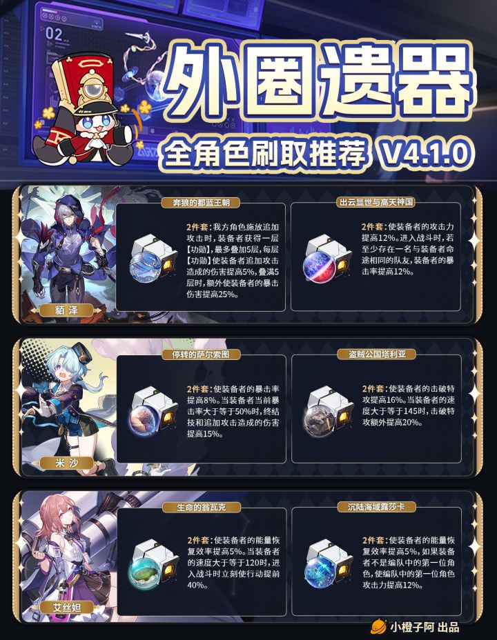 【V4.1攻略】UP角色内圈遗器刷取推荐