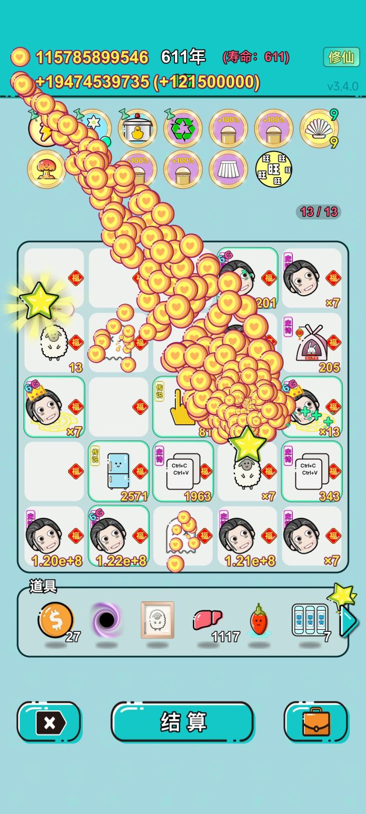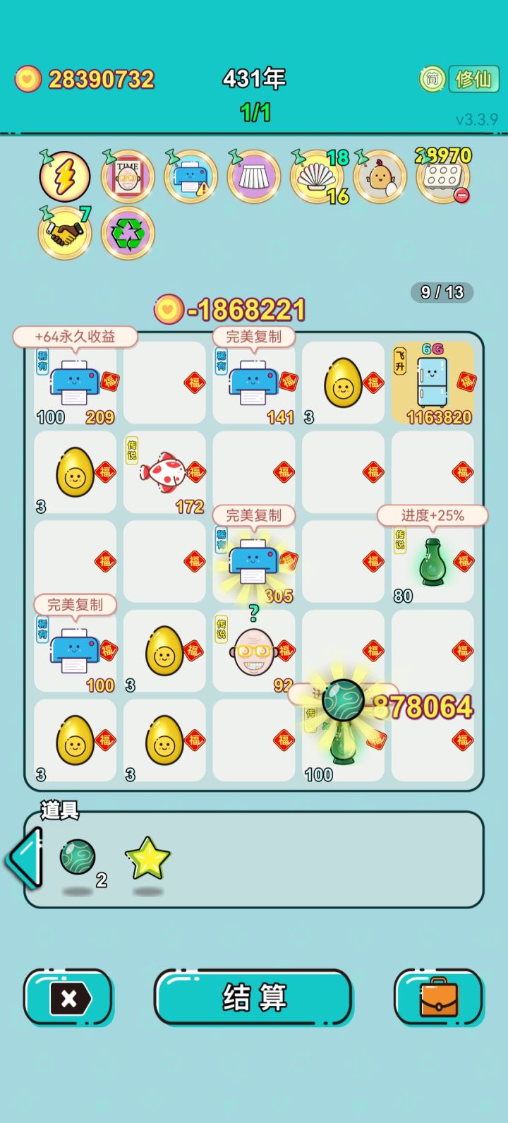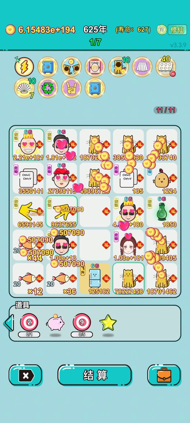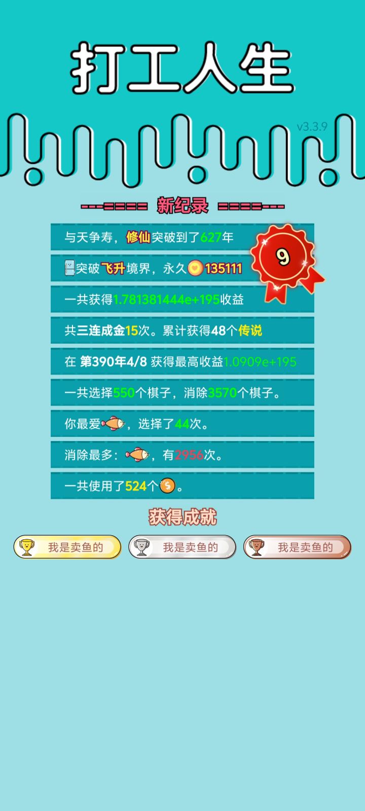 #单机游戏 #游戏推荐 我打工坚持了627年。获得了第9名。共获得1.781381444e+195收益。累计获得48个传说棋子。共选择550个棋子,消除3570个棋子。我最爱鱼,选择了44次。获得了3个成就!