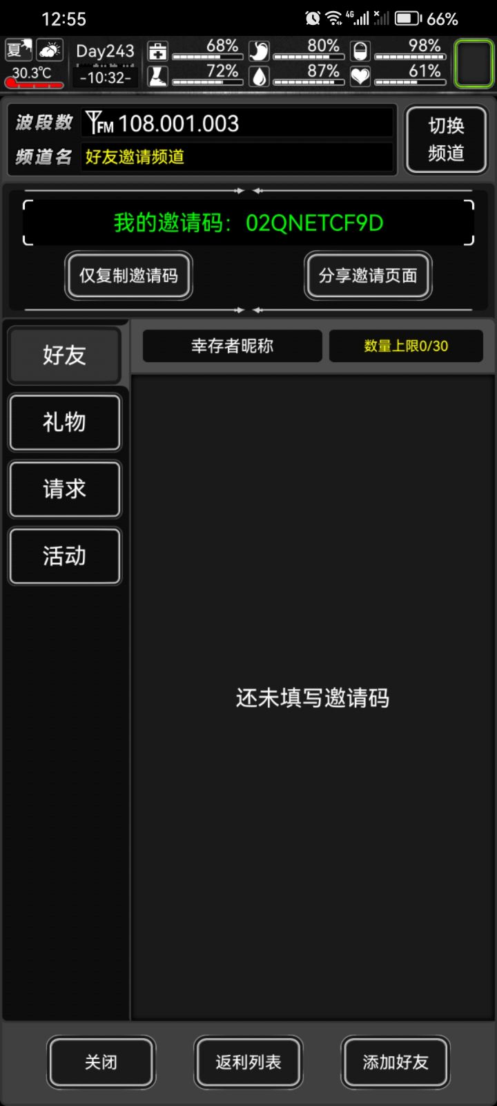 感觉再等两天也一样,选悬着的心终于还是碎了,原来在论坛看到好多交友帖,本来以为我能学习一下,充值前面加点好友,也有一点好奇好友送礼是什么,玩了半个月没用过