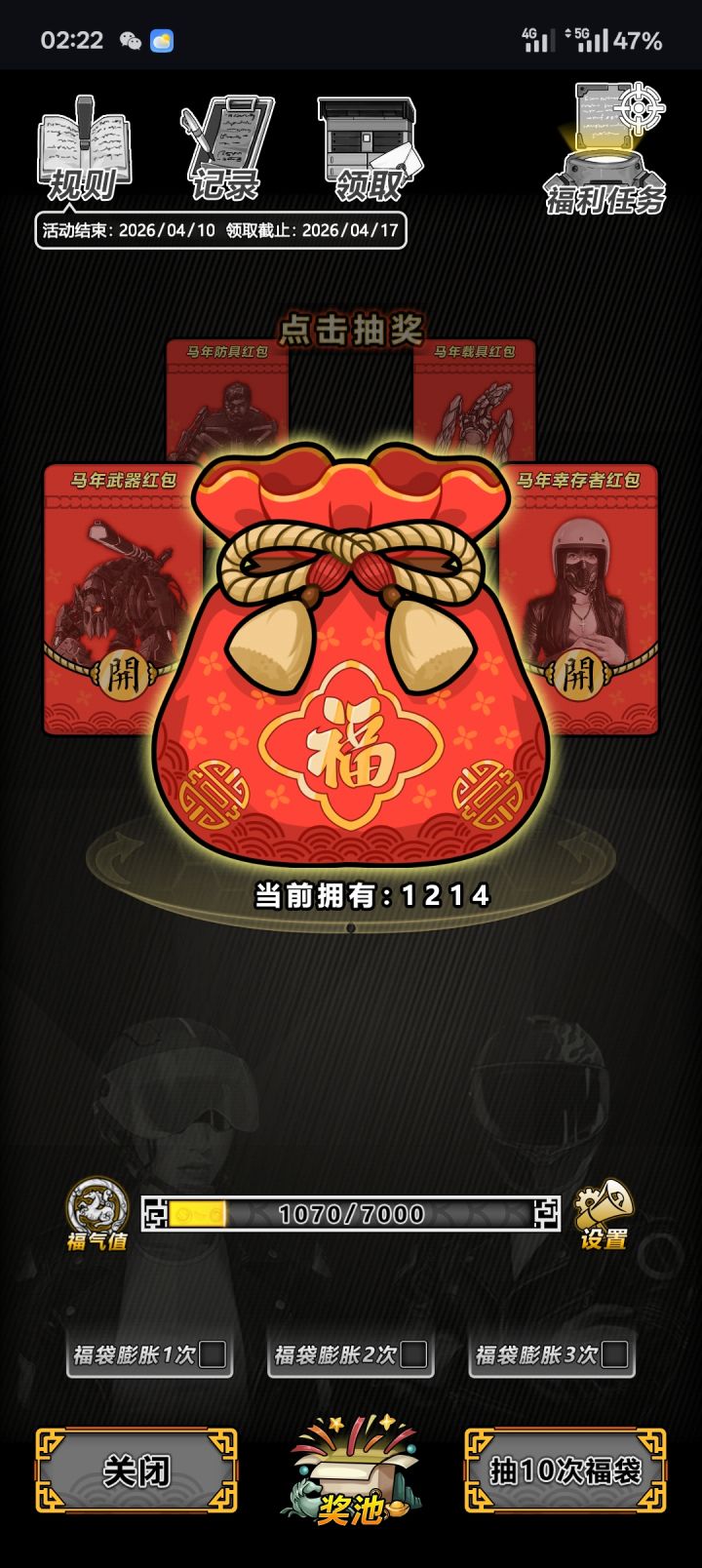 回坑每天玩玩,一开始丢了4w点进去,最后可以出两轮武器全选。我感觉可以换一种活动模式了,其实蛇年转盘在线红包加好友助力的形式就挺有趣的