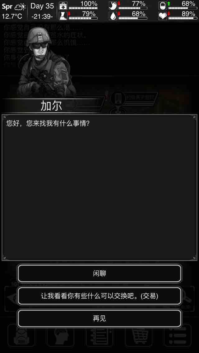 Ps : 本攻略仅作者私人见解,如有笔误,那请指出,心急者可跟据目录翻阅,不喜勿喷〖 目录 〗一. 开局[ ①] 人物选择[ ② ] 模式选择[③]选址和污染区二.基础知识[ ① ] 物资[ ② ] 家具[ ③ ] 材料[ ④ ]七值和状态[ ⑤ ]商人[ ⑥ ] 天赋三.发育思路一.开局1.角色选择:刚玩的朋友们可以用警察【约里克】,该角色自带警棍,前期发育和生存会