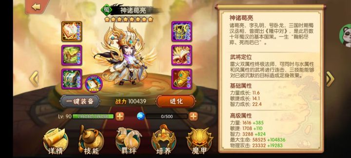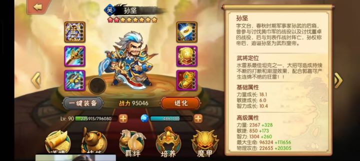 初始武将关平 一星看似平平,第一感觉不值得培养是个过渡将,但是看看技能和属性发觉完全出乎意料,特别是这款游戏目前最大的特点,连击、关平带定!配合另一位武将吕小妹真的可以打出很高的输出。第二技能目前还没发现什么可取之处 紫色技能是大幅增加力量 感觉小关将是力量很高武将,意味着能抗能打!再看第三技能破甲 完全是配合物理队的最佳前排之一。唯一有点难度的是关平由于初期1星三围不够丰满 必须通过后续把他