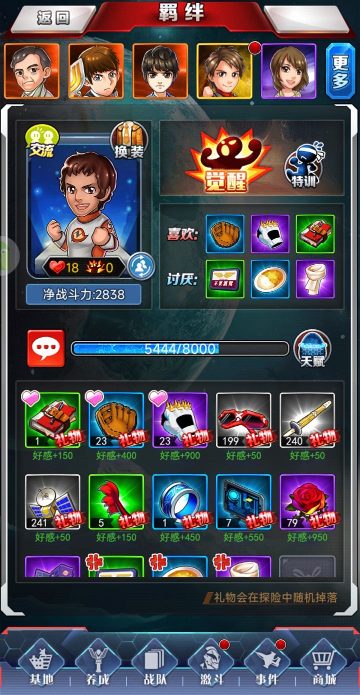 空间驯兽师-本命 勒休巴斯、贝姆斯塔、那斯喜欢的礼物:巴顿羽毛、咖喱饭、 恶魔之花讨厌的礼物:战斗日记、棒球手套、格斗手套 特训需要的羁绊: 斯菲亚虚体、外星科学家、布莱克指令、绿川麻衣、宇宙怨灵