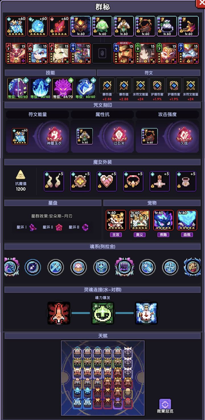 2026.2.9 大家好,这里是风滚草 本篇攻略主要带来新水牧师在对群大秘境环境下配装和打法思路,希望大家喜欢一、一图流1.场景要求及面板属性护甲穿透:9800元素抗性:5350暴击率:173.8(未触发弓/孙仲谋时,面板所需暴击率)能量上限:260(携带闪烁雷星开启疾跑后)攻速/冷却:200/50火抗:>18002.属性来源元穿:魂契