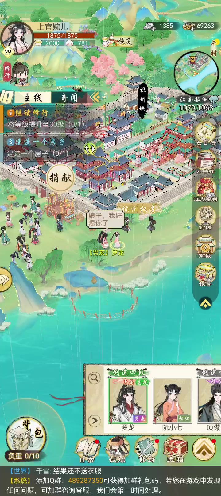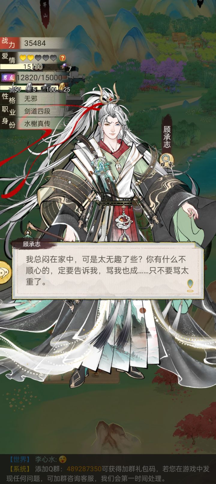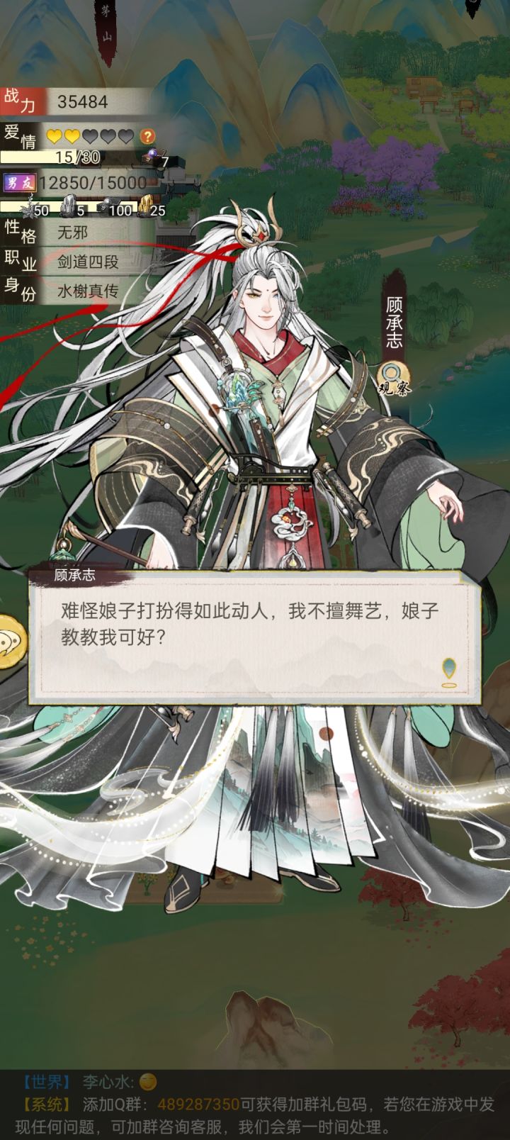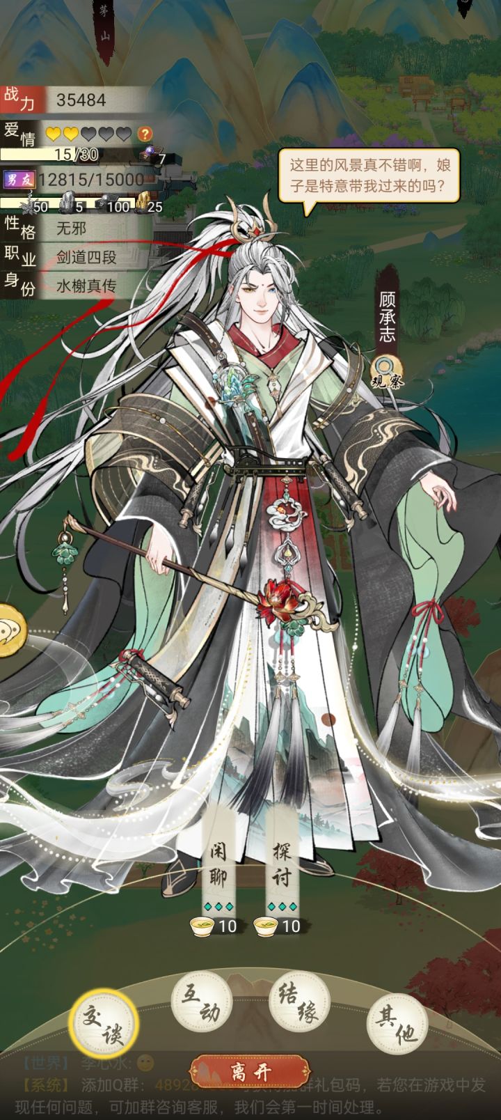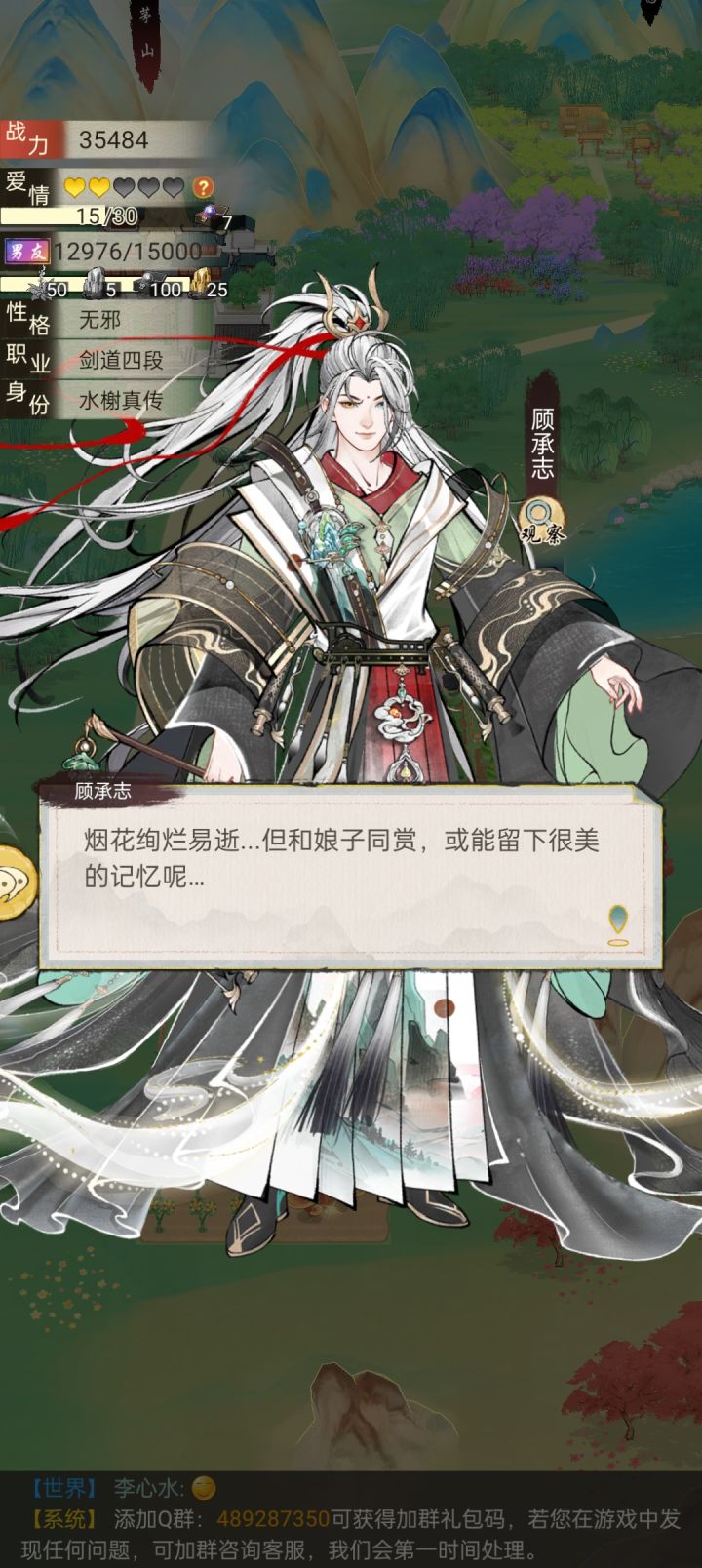 #华夏千秋 又名“震惊,躺尸80回合后,她竟对自己的情缘做出如此事情”起因就是前几天晚上越战打剑池,被一秒干趴后,我的白送男友和对面血战80回合成功拿下。在这个人人不好好穿衣服,路上抓人就双修的江湖,好像又感受到了一分纯爱(?) 虽然白送男友衣服要我自己买,而我这个吃软饭的少侠几次路过海澜之家也只给他买了个白发,或者是干脆只让他试试不买下,包括平时有事没事就拉着他和街溜子一样瞎转,又或者是闲