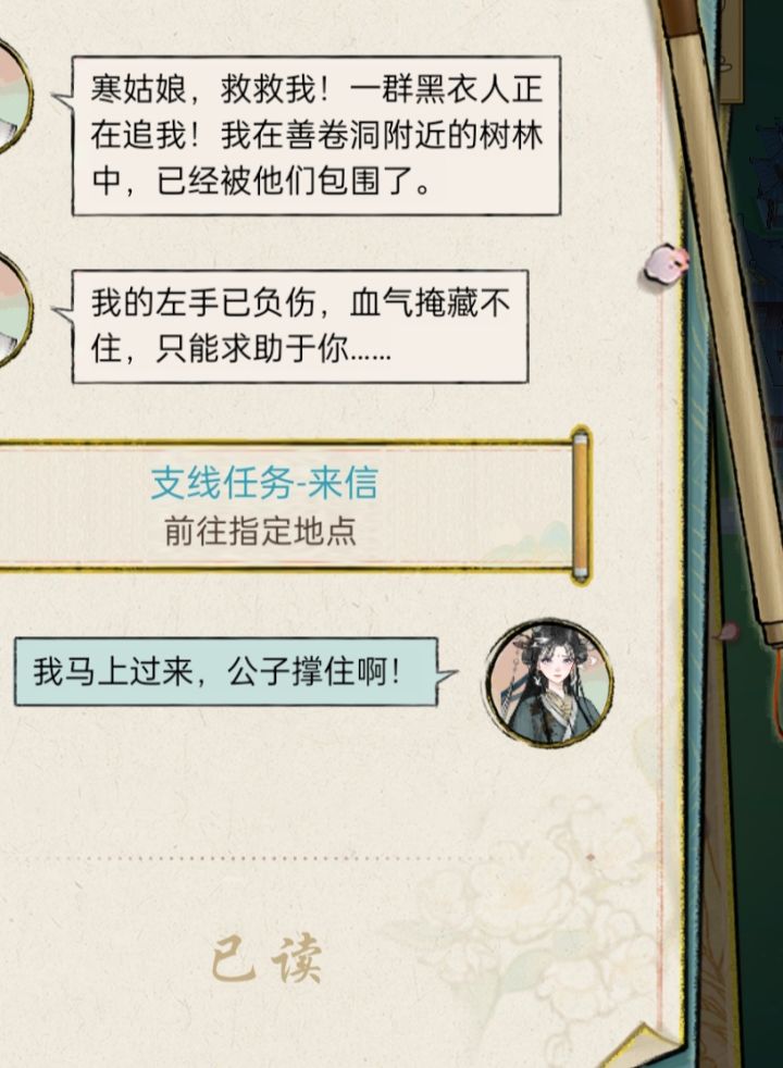 我感觉最近流年不利。离开师门前苦加修炼,偶遇瓶颈,拼尽全力无法突破,听闻观竹可以明心静性,最后和一棵竹子对视七天七夜后倒头就睡。离开师门后带娃出行,偶遇丐狗,拼尽全力势均力敌,被路过行人出手救下,分开后被一群黑衣人追到善卷洞包围。杭州那边的师弟师妹们已然指望不上,能不添乱就不错了,一番犹豫后我选择修书于方才那位女子。如果是公孙大娘都认定的天命之人,我这倒霉的运势已无周转之地,不如选择由她来破解