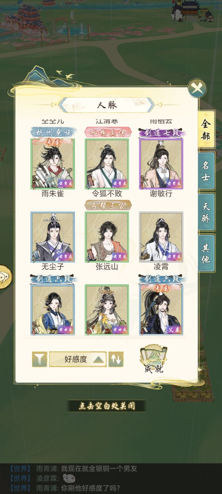 前男友女友8个,现男友一个,可表白的6个。虽然我这么多前男友,但我最爱的还是空空儿(确信)可惜如果把这仨绝代的资源全都刷到空空儿身上就好了
