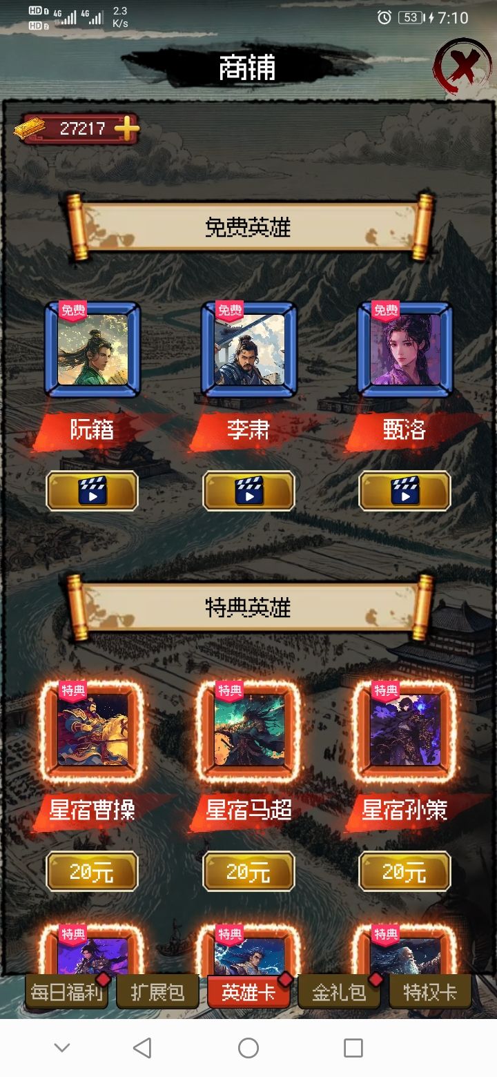 以下为个人建议,1.官方能否把每一次通关后给的橙色武将规范一下,比如限制在玩家这一局携带的橙色武将中随机,同理一些蓝色绿色武将如果有携带也是从其中随机,如果没有就默认随机,这样也方便一些能肝的玩家去鼓励他们活跃来获取并提升自己喜欢的武将,玉石已经有上限了,橙色武将不能太杂了2.就是一些非付费氪金的活动武将的后续提升,比如骑圣马超,张角,星宿姜维这种,我估计后续官方也会出其他的活动武将,可是只有