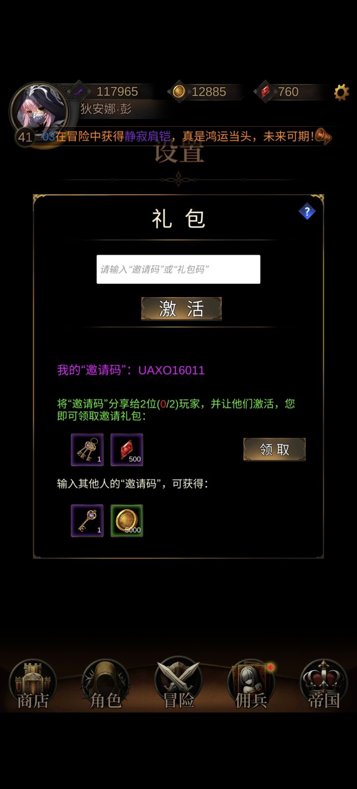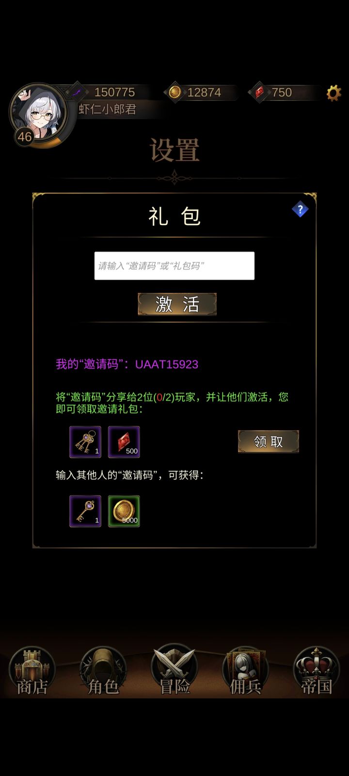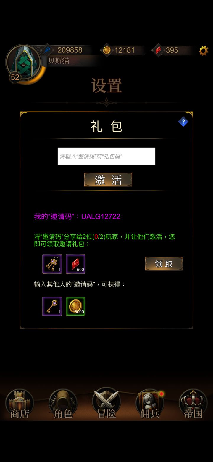 礼包邀请码:UAXO16011