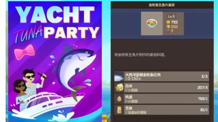 #潜水员戴夫 #潜水员戴夫攻略 你最喜欢哪种派对活动呢?后面会出一期关于派对活动的详细版攻略,这篇只做菜品推荐以及相应材料介绍正文:派对活动相信大家已经不陌生啦,测试版本下不少小伙伴反映虾和咖喱派对没有菜可以卖,少赚好多好多金币等到正式版上线就不用发愁咯,本期正好为大家推荐一些派对菜品(仅作推荐,过渡菜品等会在后面详细攻略的帖子中做介绍喔)派对一:金枪鱼派对①金枪鱼生鱼片盖饭❶大