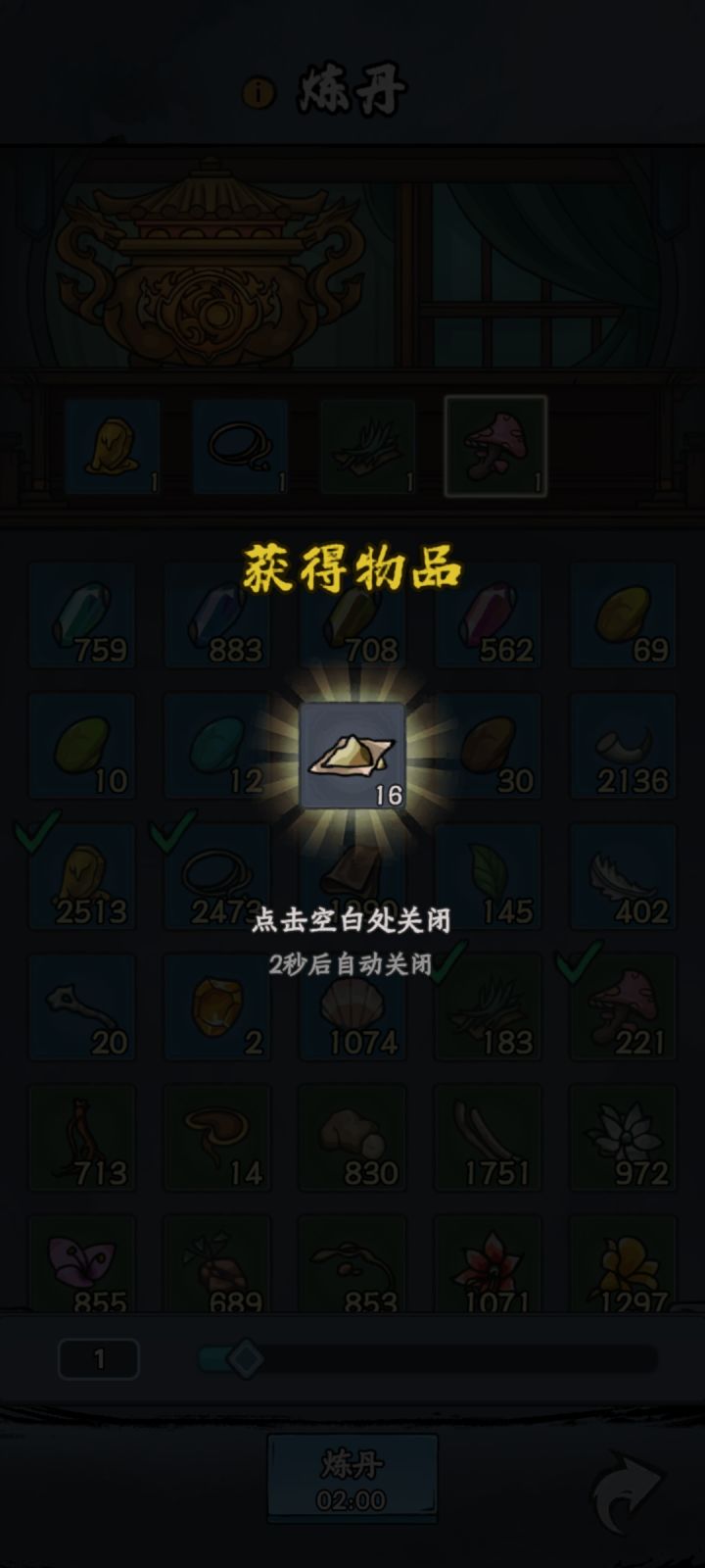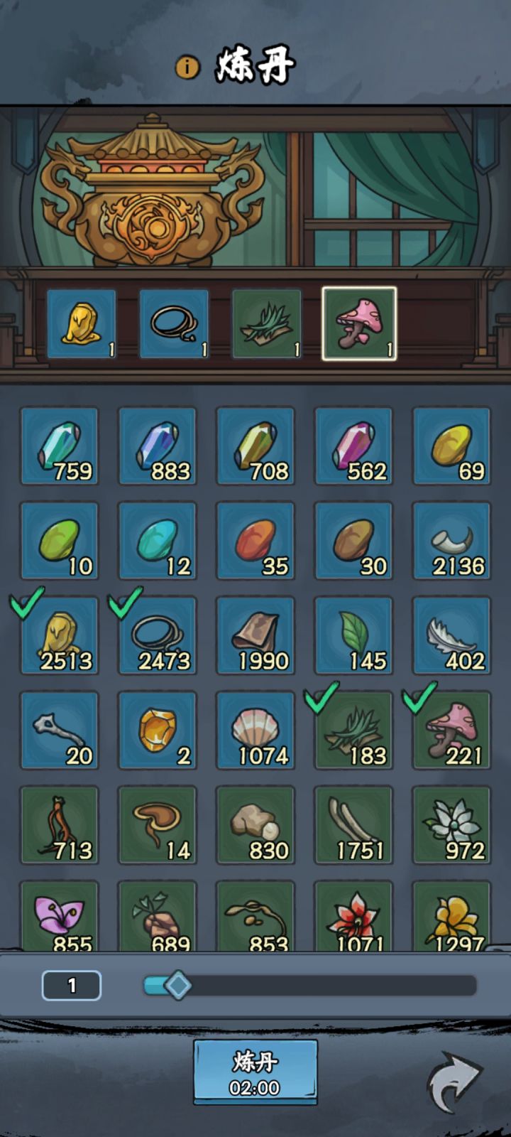 材料获取容易出,就是比较耗辉晶。随机出属性丹,成丹率还可以,性价比还蛮高的。就是不知道怎么调草药的数量,所以没试过数量多是啥样。主要是参加一下活动。