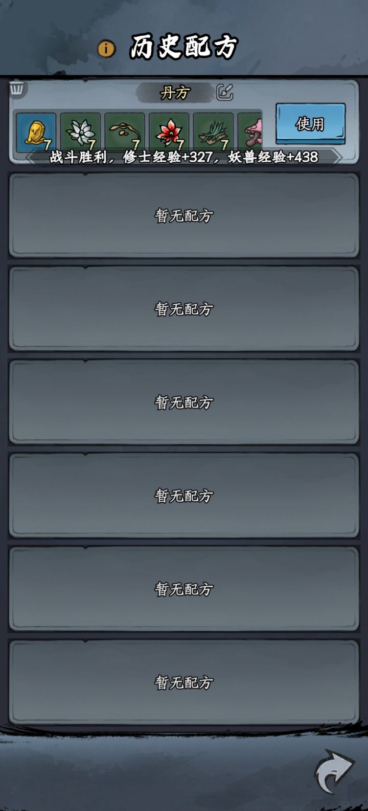UID:20234937打分:60丹方:1角9草9蘑菇丹道称号:平平无奇描述文本:没钱氪挂机,只能做点药来升级这样子