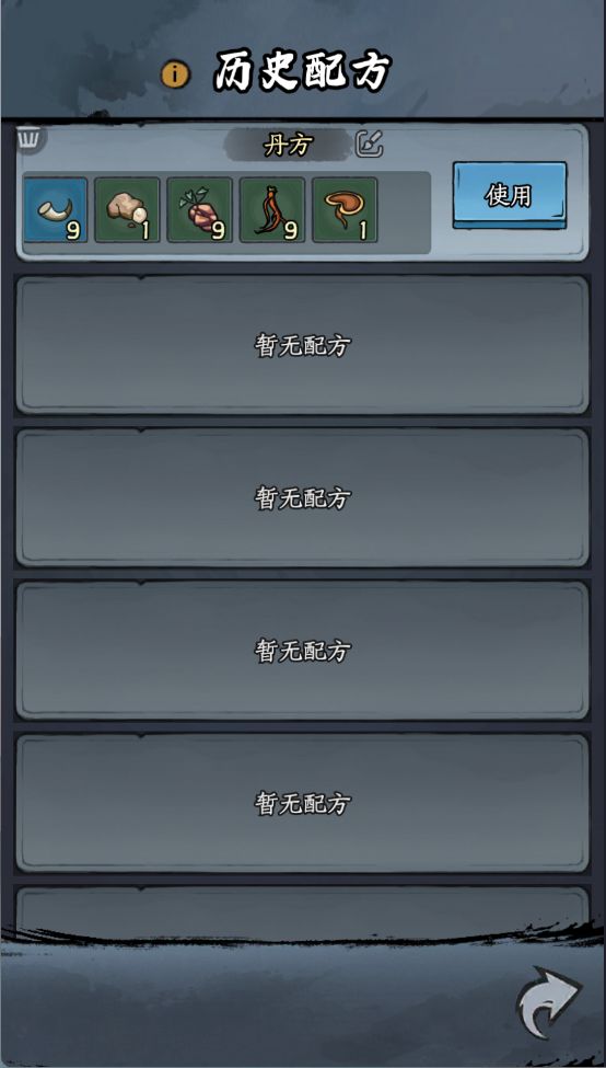 UID:20234001打分:90丹方:四色石9草8蘑菇8丹道称号:挂机药仙描述文本:材料获取容易出修炼丹几率还可以,性价比还是比较好的。