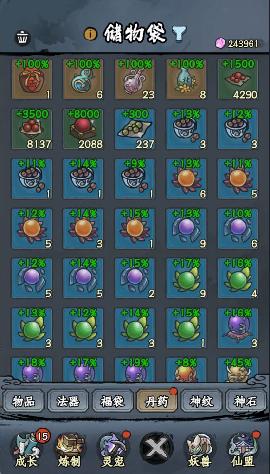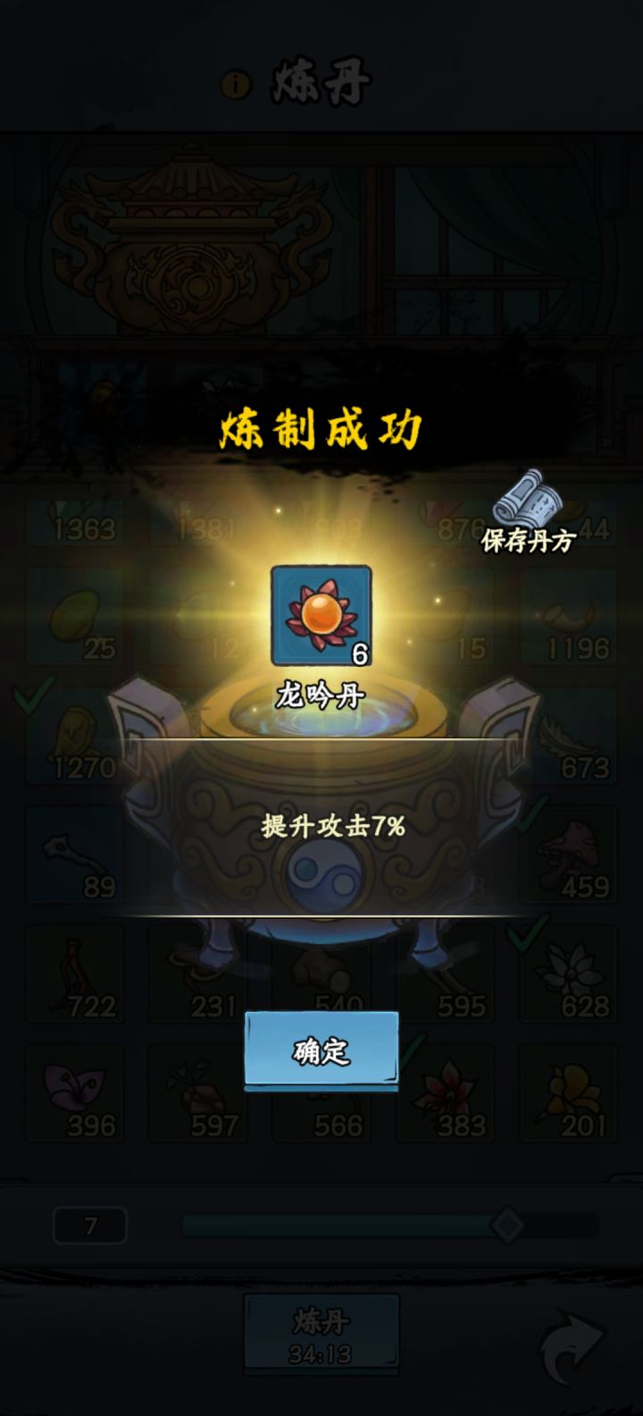 角色UID:20277120评分:100七的意志希望能增加批量分解丹药和丹辉换稀有丹药的功能。