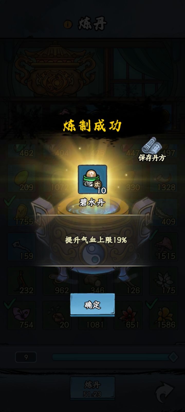 UID:20274028大概一半几率出16个药渣,每天都轻松换丹炉。前两个材料可以用其他多余的材料替换。评分:99