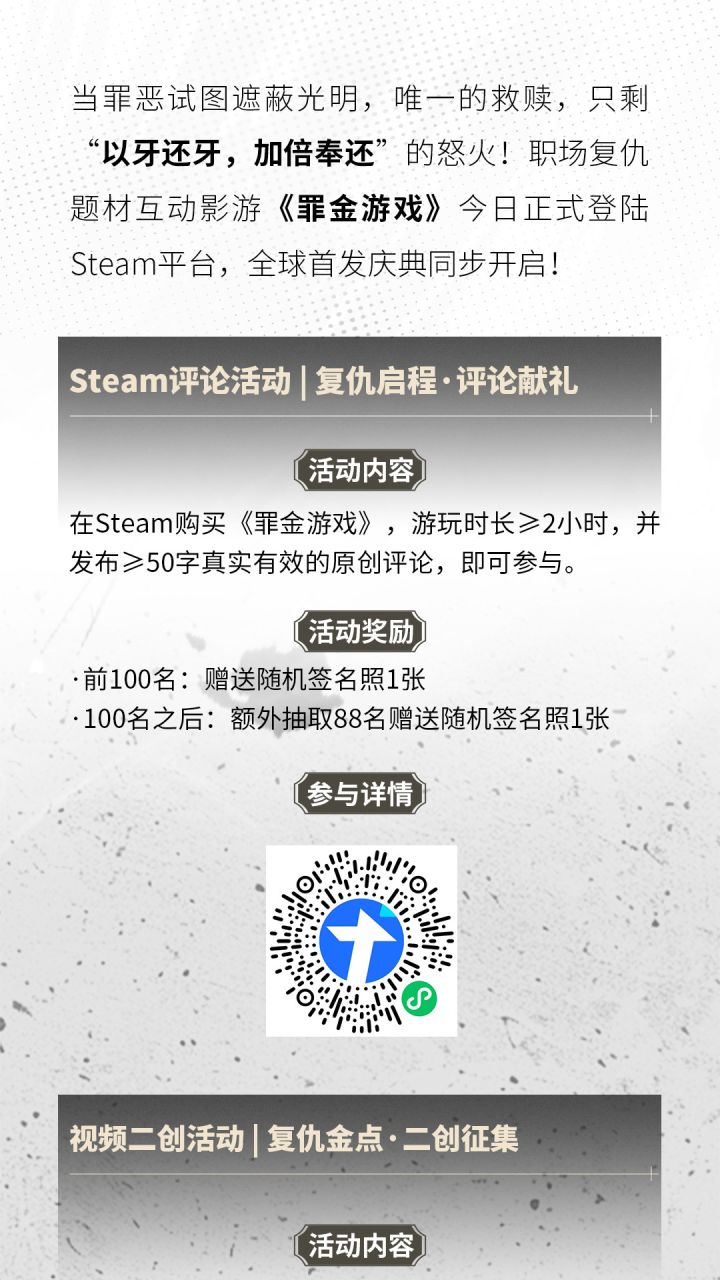 当罪恶试图遮蔽光明,唯一的救赎,只剩“以牙还牙,加倍奉还”的怒火!职场复仇题材互动影游《罪金游戏》今日正式登陆Steam平台,全球首发庆典同步开启!活动时间:3月6日—3月19日 #steam游戏 #互动影游 #今日上线 #罪金游戏 #首发活动