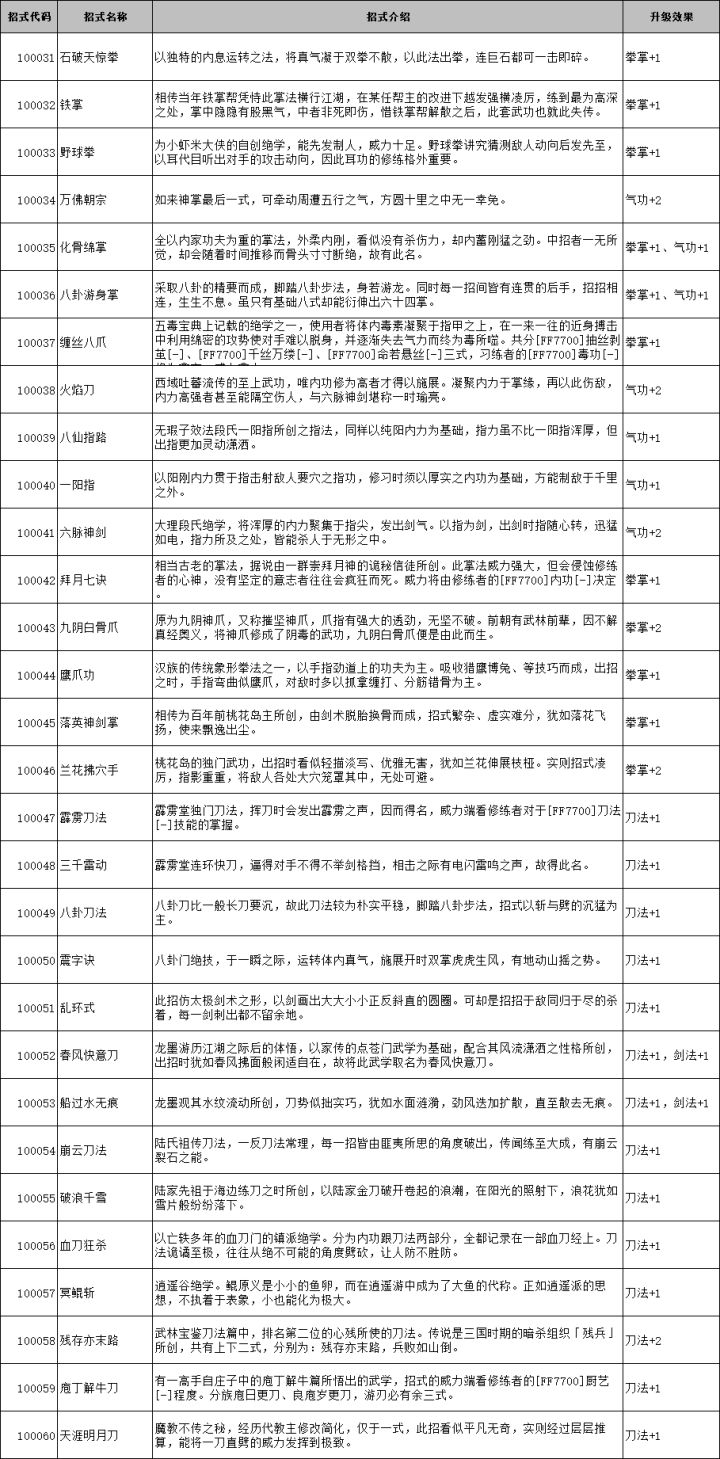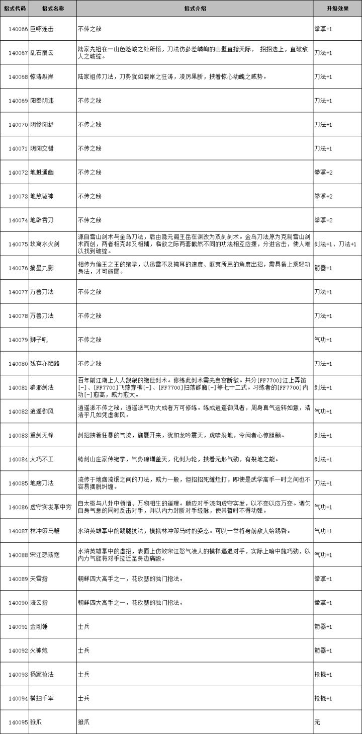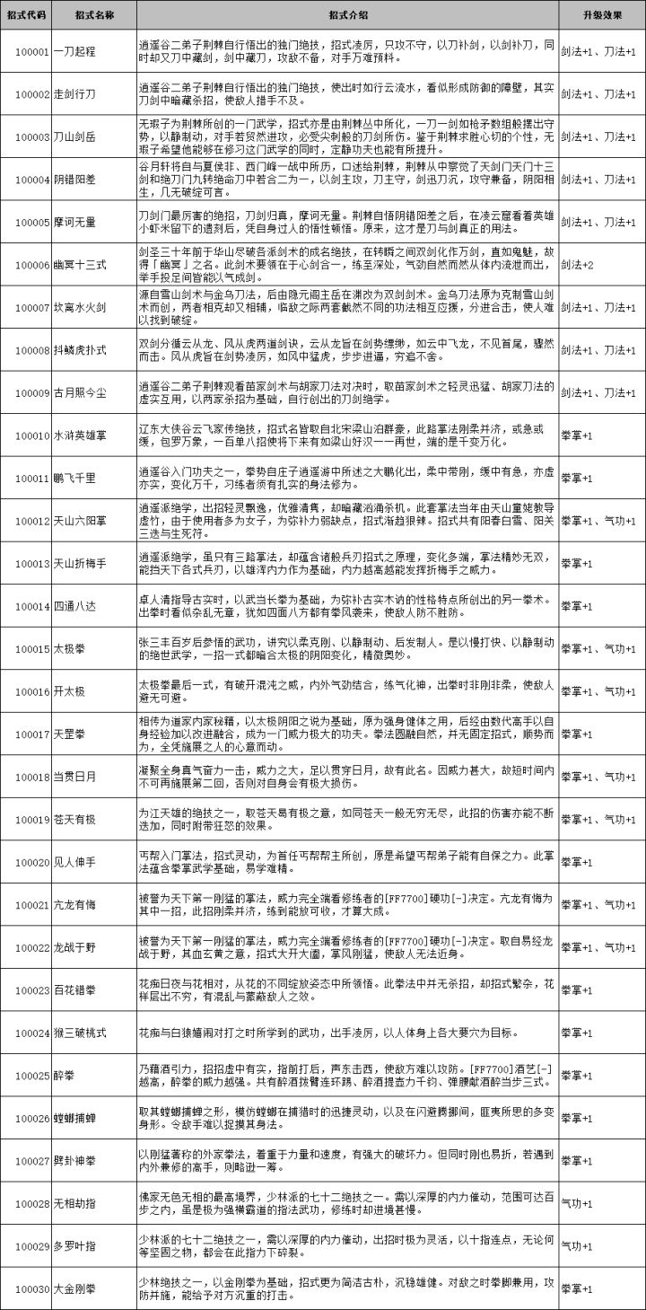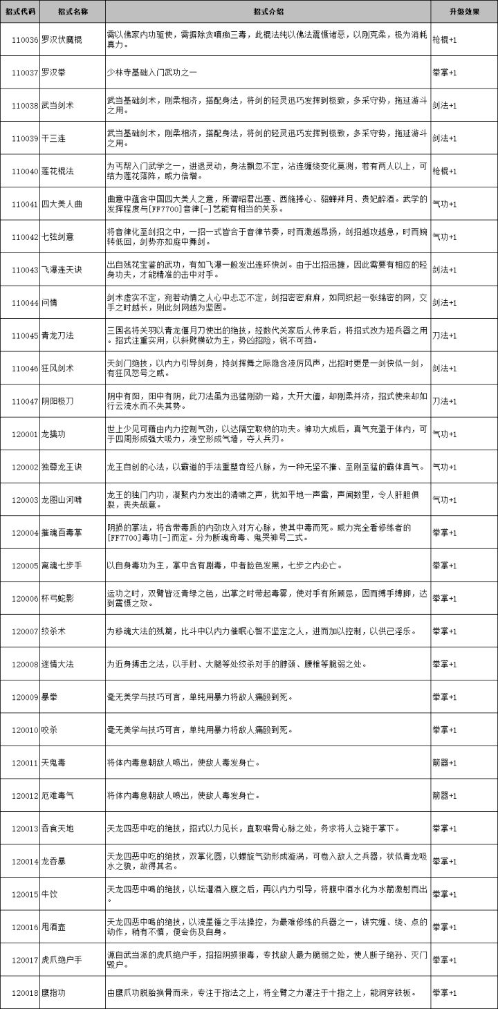 侠客风云传前传外功武学代码