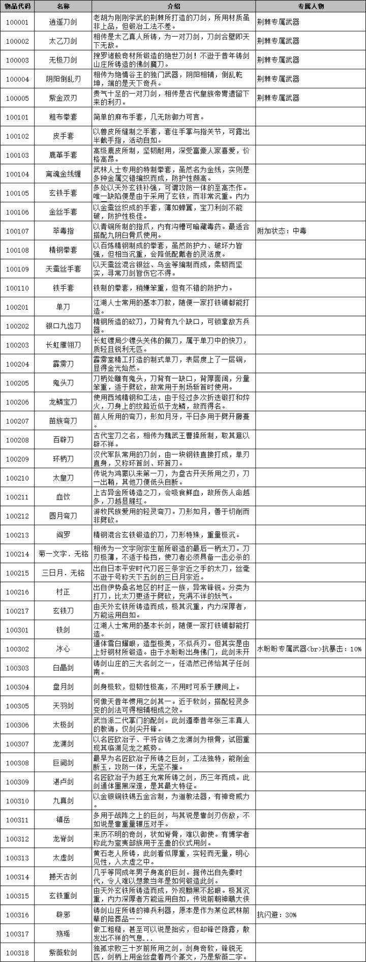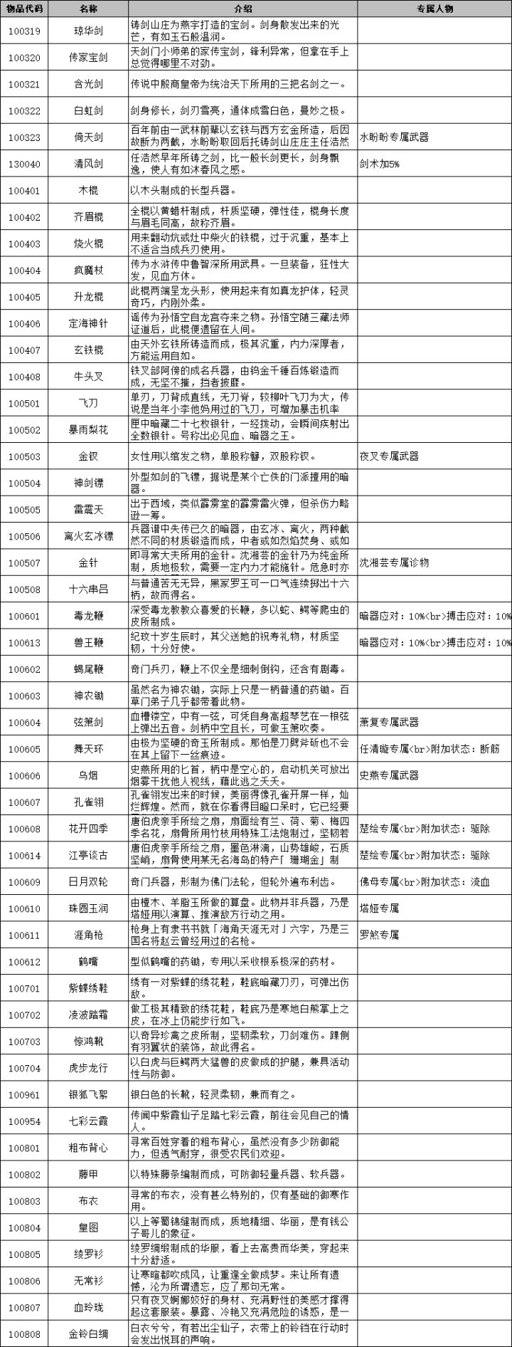 侠客风云传前传物品代码