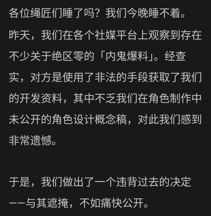 米哈游《绝区零》官方昨日发布公告,说明了有内鬼使用非法手段获取的官方的开发资料。于是《绝区零》官方不再遮掩,直接公开了正在制作中的「虚拟偶像(暂用名)」阵营角色设计概念稿,并且表示在完成三位偶像的最终设计后,计划以构建真实虚拟偶像的方式向玩家介绍她们,届时偶像们会亲自参与《绝区零》的直播,并且制作组会围绕她们推出诸如角色曲之类的相关企划。#今天游戏圈发生了啥 #游戏资讯 #资讯爆料 #绝区零 #