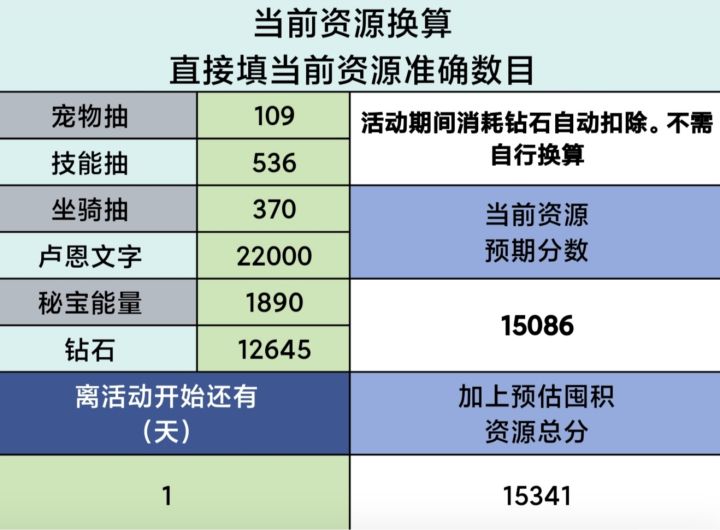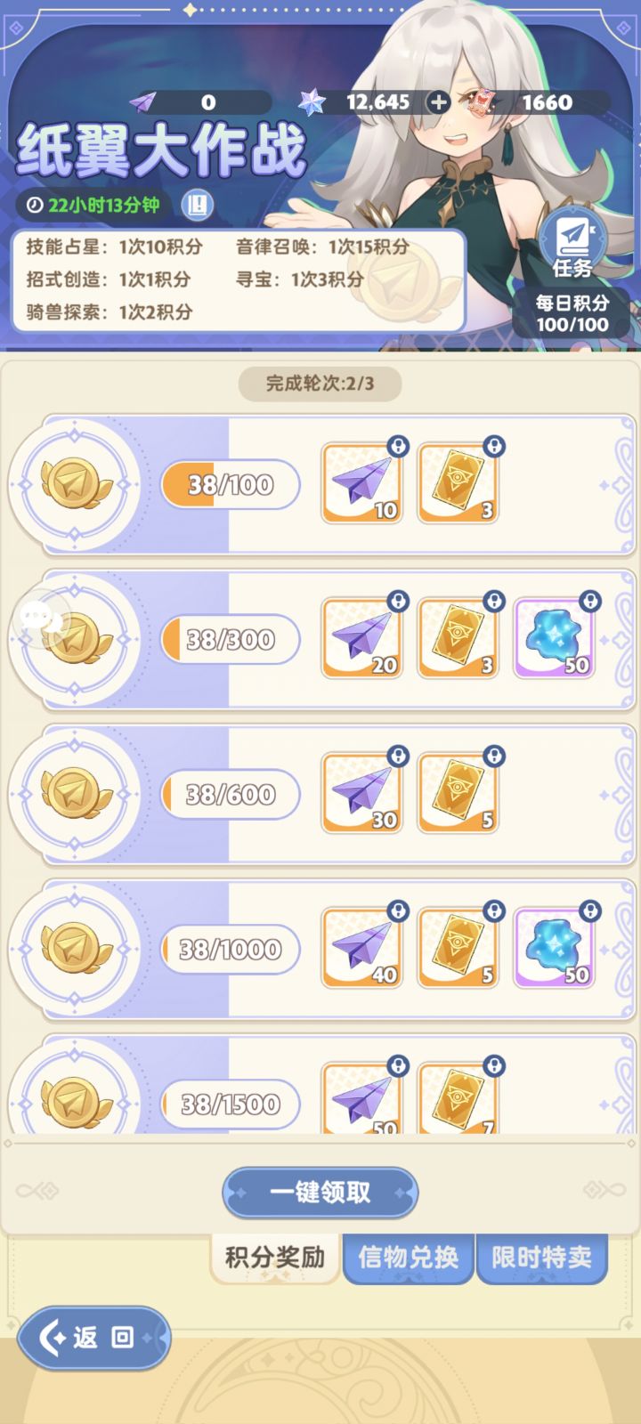 防止挨喷:仅提供思路,如果屯着玩难受没必要硬屯 已更新自己千氪进度的背包状态和后7天的最低积分 第二期纸飞机进度已更新,三四期鸽了,第五期见0-7天:技能抽50抽固定两金,宠物抽完,秘宝每日消耗,领取存留 8-11天:技能2500+每日700+6天秘宝800+补500=4500积分 免费+钻石+6+25=105纸飞机 50(一)+80(二)+120(三)+280(四)=