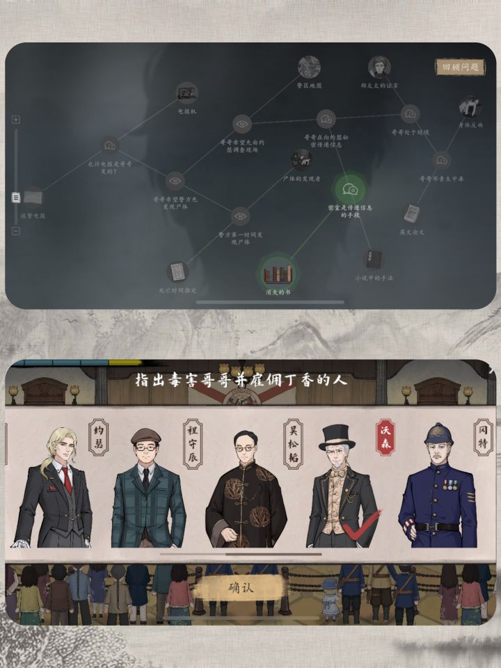 观前提示:本攻略将会汇总推理过程中的全部关键正确选项,无需进行决策的内容本文将会省略,主要帮助卡关的玩家快速通关。攻略难免涉及剧透,想要沉浸体验请谨慎查看本文。游戏开场后,随着剧情推进我们选择吃下潮糕,然后我们就会陷入昏迷,第一关正式开始!随后我们就会进行第一处剧情推理,细节可见图P1。如果发现无法触发攻略提及的相关解谜点位,请检查场景内可交互内容有无遗漏。经常需要把所有场景可交互内容都调查