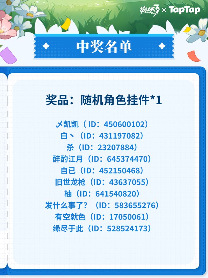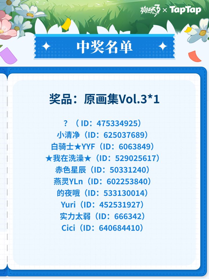 舰长好!今天是一年一度的重要日子——崩坏3周年庆,游戏獭为您带来了八周年活动的重要情报,听说只需要分享游戏相关图片,带上【游戏uid】发布带话题#崩坏3八周年快乐 的图文动态,就有机会赢取原画集等精美奖品,快来看看吧~🎁即日起,在所有符合活动规则的图文动态中:随机抽选10名舰长,各赠送「原画集Vol.3」*1随机抽选10名舰长,各赠送「随机角色挂件」*1随机抽选12名舰长,各赠送「300水