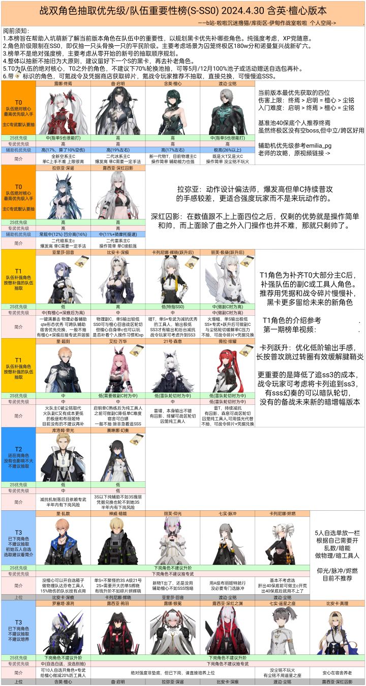 SS角色抽取优先级榜/队伍重要性榜