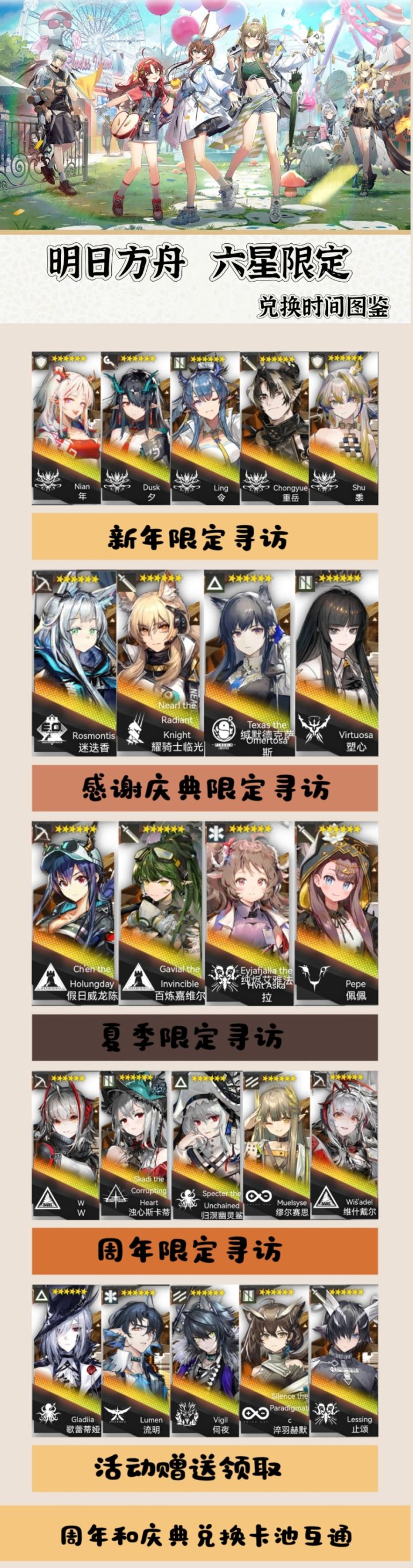 限定寻访干员统计一览表(2024/5/1更新)