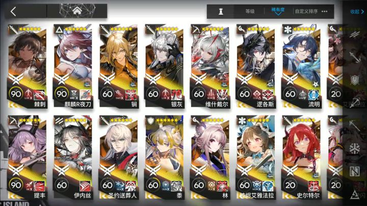 #明日方舟抽卡 #明日方舟 数了一下一共有31个六星,重复有7个,夜刀二潜是信物换的,新手池里出了推王银灰,大学生歌蒂四爷是送的,能天使是自选的,后来中坚又抽到了一次感觉自己75级这个练度蛮高的,想听夸夸~