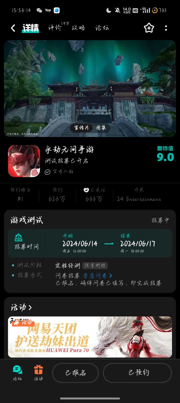 只是预下载还不能玩是这意思不?#永劫无间手游定胜终测 #永劫无间