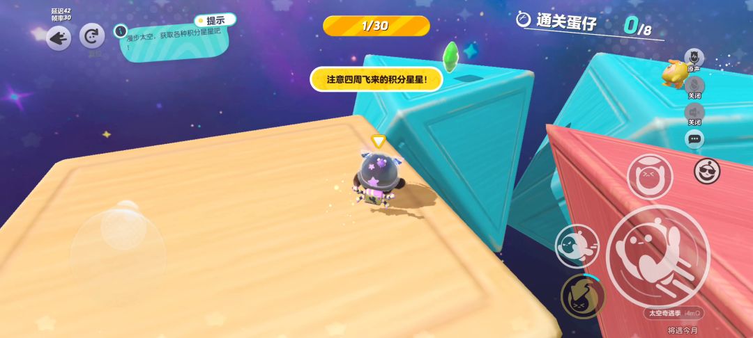 这图也失重,不好判断落脚点。五分的积分到处乱飞。#浩瀚宇宙,乐趣无穷#蛋仔派对#蛋仔派对太空奇遇季