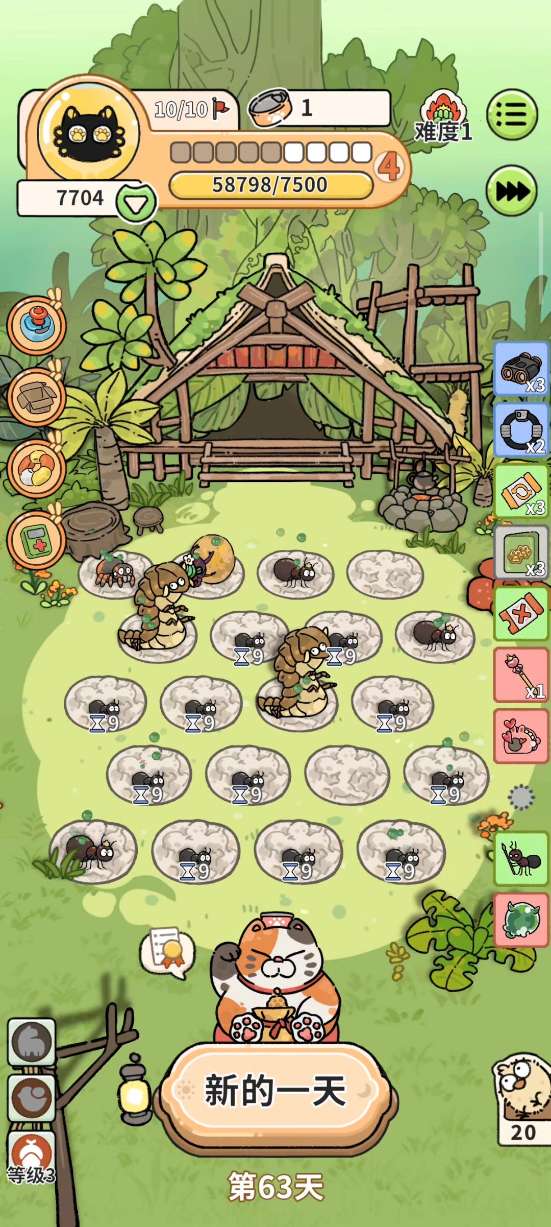 蚂蚁+屎壳郎+蜘蛛+沙漠蠕虫简直就是无限再生;注意留好空位让蚂蚁活动,道具健身环必备其余与蚂蚁有关的都拿#猫神牧场阵容