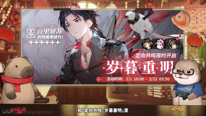 两个角色池,有点坑。百里屠苏(炎,尖峰,不知道梦中身算不算召唤物)红玉(风,游徒,技能可C可吹毒雾)后续不会连开,和岑樱池一个规则。烙痕池一个(猜测可能是风队有利的)送三组四五星角色体系(共九个)大家都知道的:角色50抽,烙痕50抽活动商店和岑樱的一样:满破SSR烙痕,角色5抽,烙痕五抽,家具,养成材料新活动是大富翁增加烙痕技能乘区月卡加送体力大家说的都有在听,会改的。#白荆回廊#游戏安利