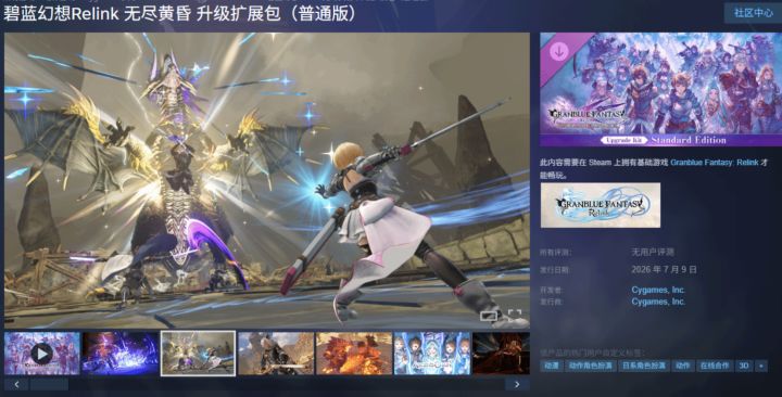 Cygames 在4月17日重磅官宣《碧蓝幻想 Relink:无尽黄昏》,这款ARPG大型DLC将于7月9日全球正式发售,登陆PS5/PS4/NS2/Steam全平台。同时公开测试定档4月24日,为期3天,所有玩家均可以免费参与,抢先体验新内容。作为系列核心扩展,本作内容全面进化:继承并深化了此前的多人联机玩法,还新增了大量单人离线挑战的内容,战斗方面可谓是更酣畅、角色阵容也更加丰富,空之世界冒