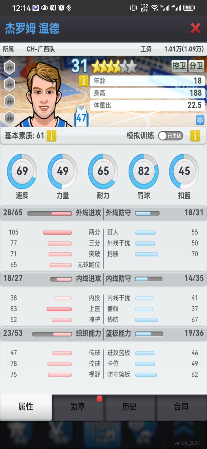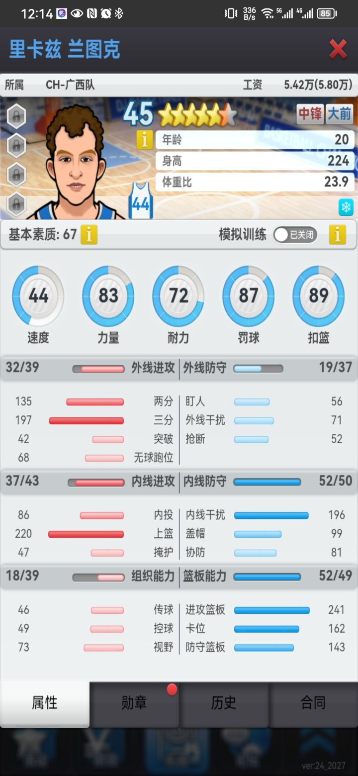 从二联跳到五联了!为五联买了个新大哥,但得分不多,看录像好像不太出手,需要打个无限开火吗?有点铁,是二联上限导致的吗?没瓷,没后仰200万买的#游戏讨论#游戏安利#游戏推荐#bcm#篮球经理