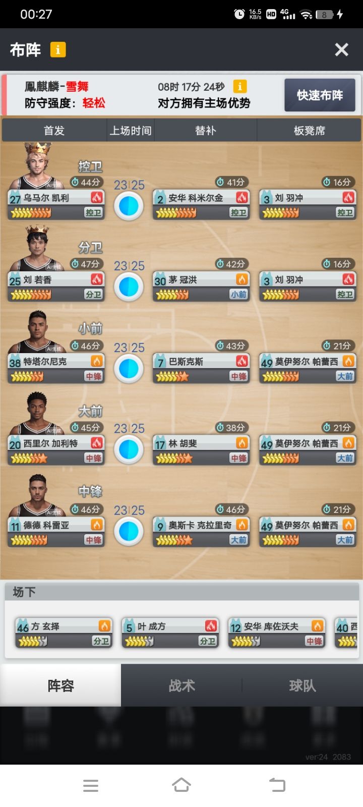 小卡是我的外线队,战术以注重外线为主,全部球员买苗自练,我一直认为球队应该两分和三分兼备,所以二突和三二无都有,保证了得分的稳定性和追分的爆发性,同时控卫有大组织,能准确找到队友。很幸运季后赛能黑三,打内投队其实很不好打,对手两场比赛总命中都在50以上,能赢我觉得主要靠的是三二无分卫的良好发挥,第一场首发分卫三分投开,第二场替补分卫三分投开,在分数落后时帮队伍爆发追分。我认为外线队打内投队伍的策