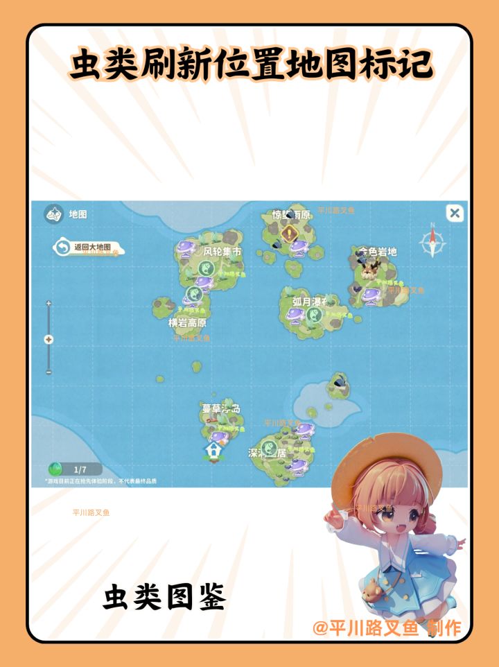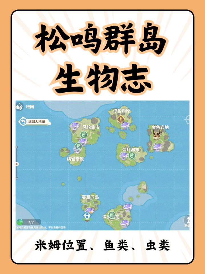 松鸣群岛的米姆位置、4级虫类、5级虫类、5级鱼类已更新完。各地区苍翠币位置、1-3级鱼类虫类图鉴,树野小岛、溪柳小岛的米姆分布,均可主页查看。#米姆米姆哈 #米姆米姆哈测试 ps:(其他平台更新得快一点,这边更新得晚一些)