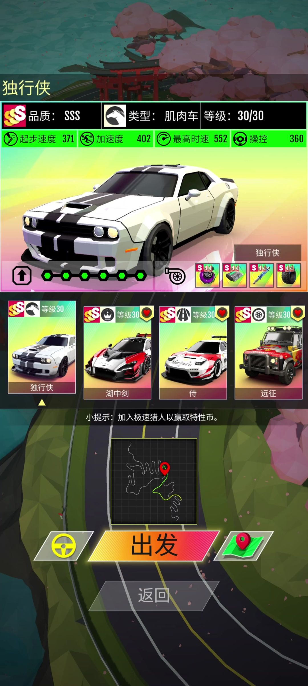 #绝尘漂移 #发现好游戏 开始玩这个游戏的第一天小充了一点看网上教程说这个肌肉车和越野车是现在最强的不知道是不是真的那请问跑车该抽什么呢?求指点指点
