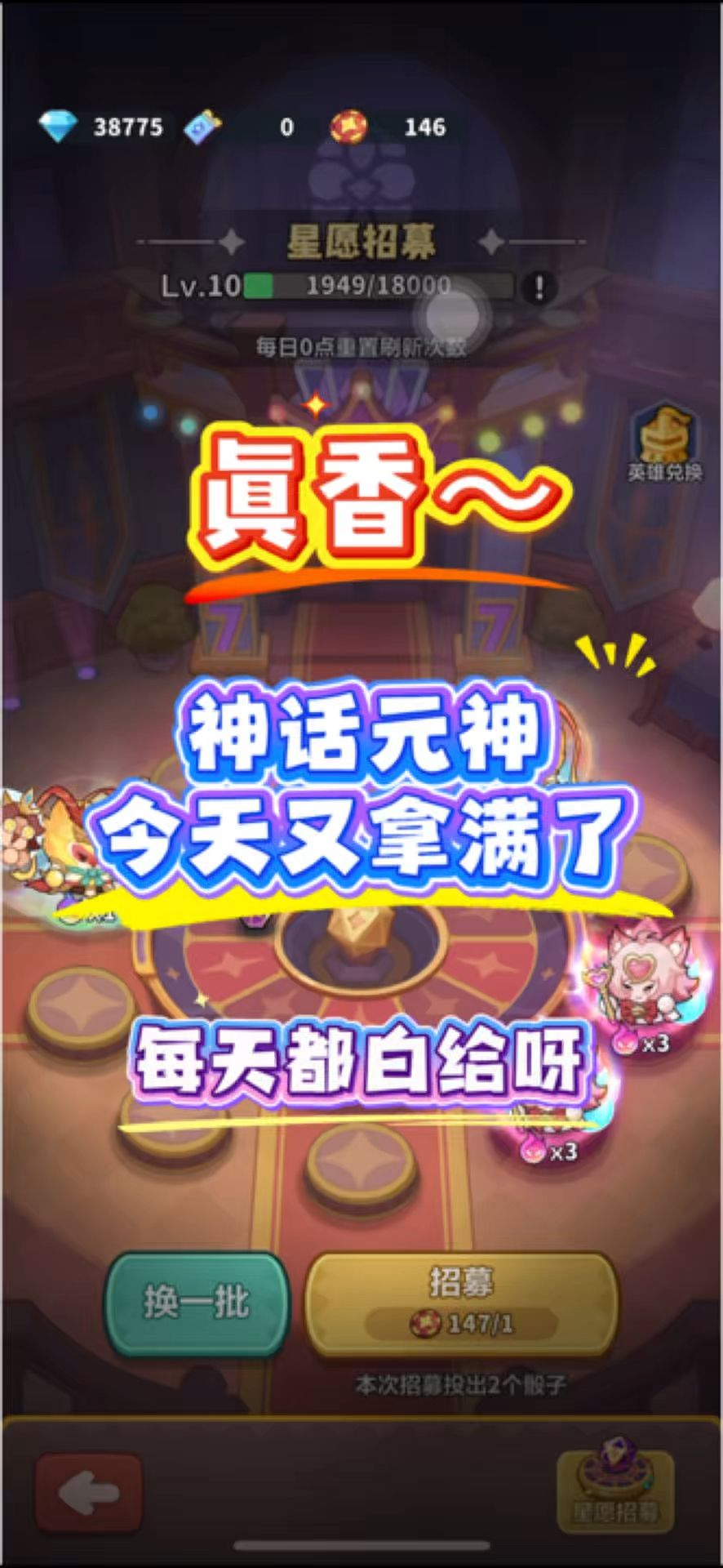 #永远的蔚蓝星球 #蔚蓝星绽计划 #星绽四期传承不息 同理是按照之前的方法抽奖获得,当时就有小伙伴发出疑问,然后我们就进行了一场小小的讨论。 讨论的话题是: 许愿池,转盘首出红色英雄,就算你不换它,它也会一直出重复的。 这一点需要补充一下,因为确实没有测试过这个问题。 有位好友说他在许愿池刷新出来的也是钢铁汪,但不是很想要,于是使用多次免费刷新,还是一直出钢铁汪。由于免费刷新次数只有两次,所以一