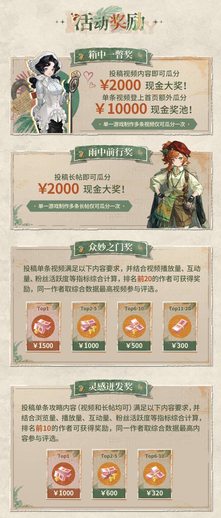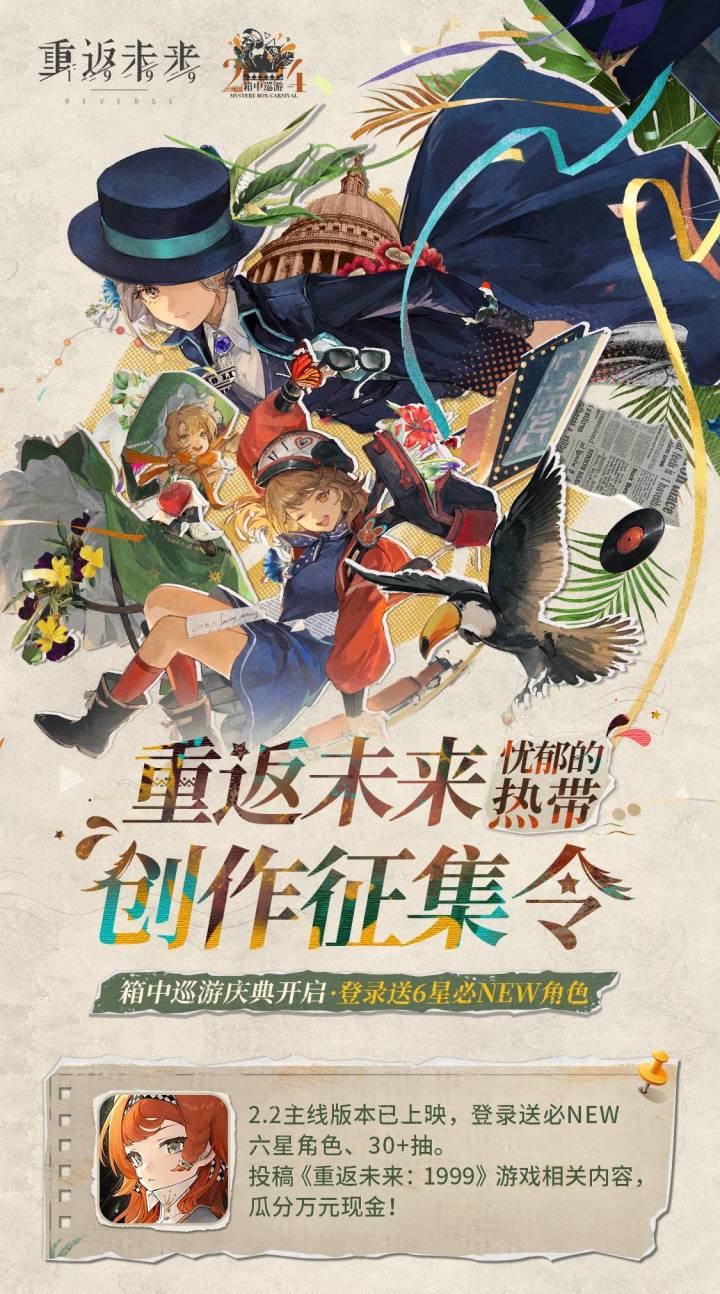 #重返未来忧郁的热带创作征集令 创作活动获奖名单现已公布。感谢大家一起体验2024箱中巡游 · 2.2主线版本「忧郁的热带」。投稿《重返未来:1999》游戏相关内容,瓜分万元现金!经过综合评审,恭喜图上小伙伴在本次活动中获奖!活动链接:https://www.tpp315.com/activity/388更多活动正在进行中,点击活动广场参与投稿,现金奖励等你瓜分:https://www.ta