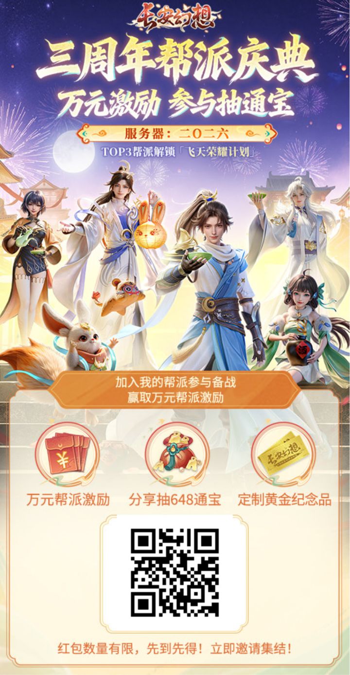 #发现好游戏 长安幻想三周年盛典开启,绑玉、资质丹、妖魂果免费领!还有稀有成就,黄金葫芦等你拿:https://m.sysl.cc/SlnAgN5#长安幻想蛇年新春版本 #长安幻想 #长安幻想兑换码