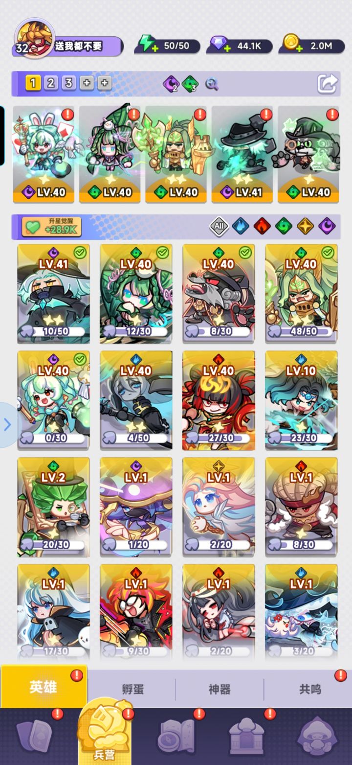 #阵容分享 id 72区 送我都不要暗射+暗魔术师 +风沉默+风百合+风狼人简直前期推关活动的万金油,输出爆棚,基本一直平推过去就行#彩色点点战争