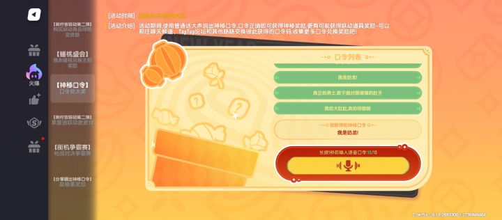 🍂【活动时间】2025.07.12-2025.08.31🍂【活动介绍】活动期间使用普通话大声说出神秘口令,口令正确即可获得神秘奖励,更有可能获得联动道具奖励。【基本上只要没有很重的口音基本都可以识别成功拿到奖励!【对自己的普通话不太自信的可以尝试借助AI!【全部42条口令已经更新完成!大家快去兑换吧!后续煮啵还会做一些好玩的内容!欢迎关注!🙋🏻♂️口令汇总