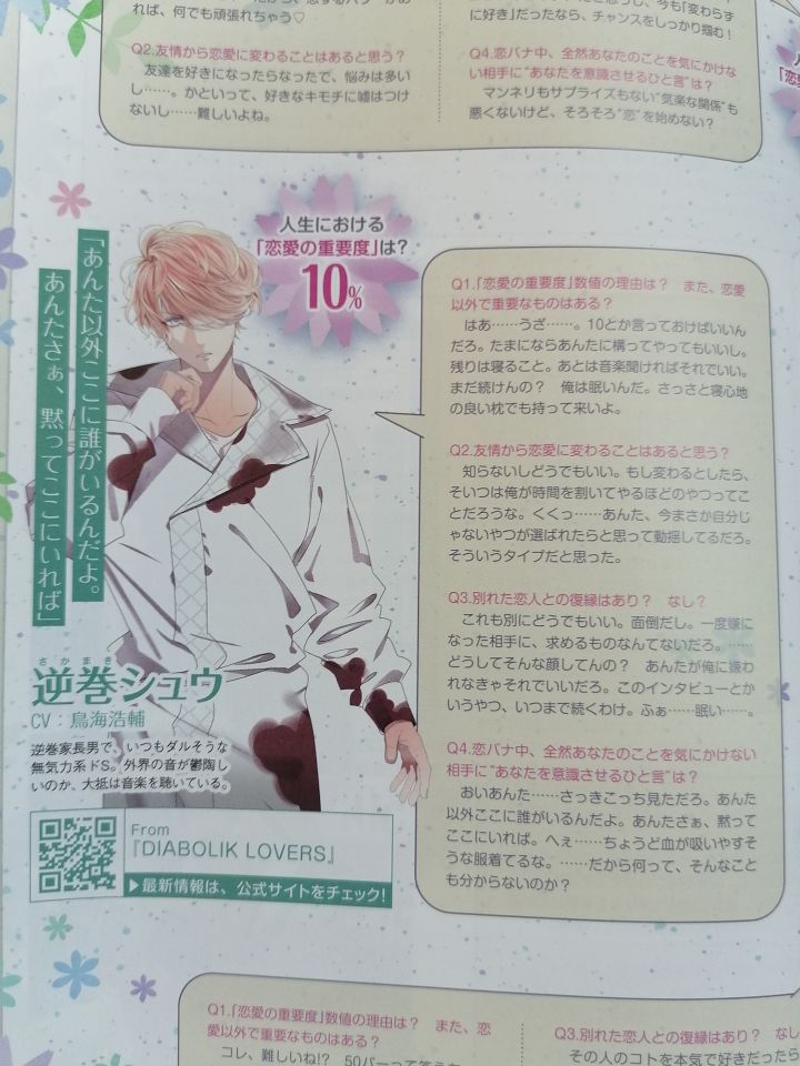 还没玩过丘比特,但是看杂志的时候有被萌到,怎么会这么可爱#共生丘比特 逆卷修的话,感觉正常发挥(不过谈论恋爱价值观大菠萝怎么派你来谈这个话题的#魔鬼恋人 #日乙