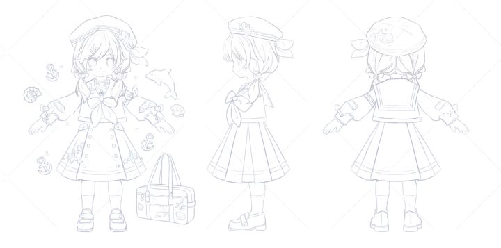 游戏id:3676686麦芬怎么能没有属于自己的水手服呢!灵感来源?灵感来源就是要水手服啊!创作思路以「水手服」为载体基础,运用海星、贝类、海豚等海洋元素进行创作融合色彩搭配上运用蓝、灰、白为主色调突出制服的经典感,同时在小的装饰上加入渐变的亮色来吸睛,通过海星刺绣、贝壳项链等细节来增强海洋主题的视觉效果如果喜欢我的作品请给我点个赞!非常感谢!≽^ ⦁ ⩊ ⦁ ^≼❤到时候请投票支持一下