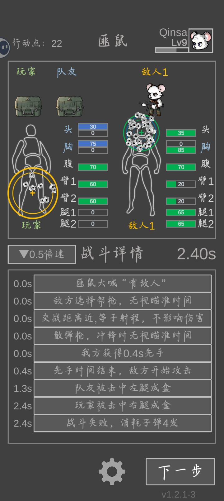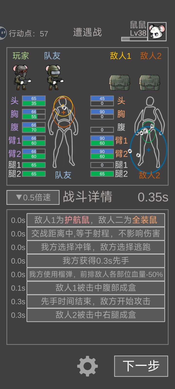 解锁榴弹炮以后开局炸一下对面会减50%血量,然后拿一把冲锋枪带达姆弹,等级越高越好,就对着对面的腹部打,先手时间就能秒掉1个,无视对面的护甲(仅限打架)。打匪鼠因为不能靠榴弹炸,尽量绕开,或者对头打,或者让队友打。#鼠鼠模拟器