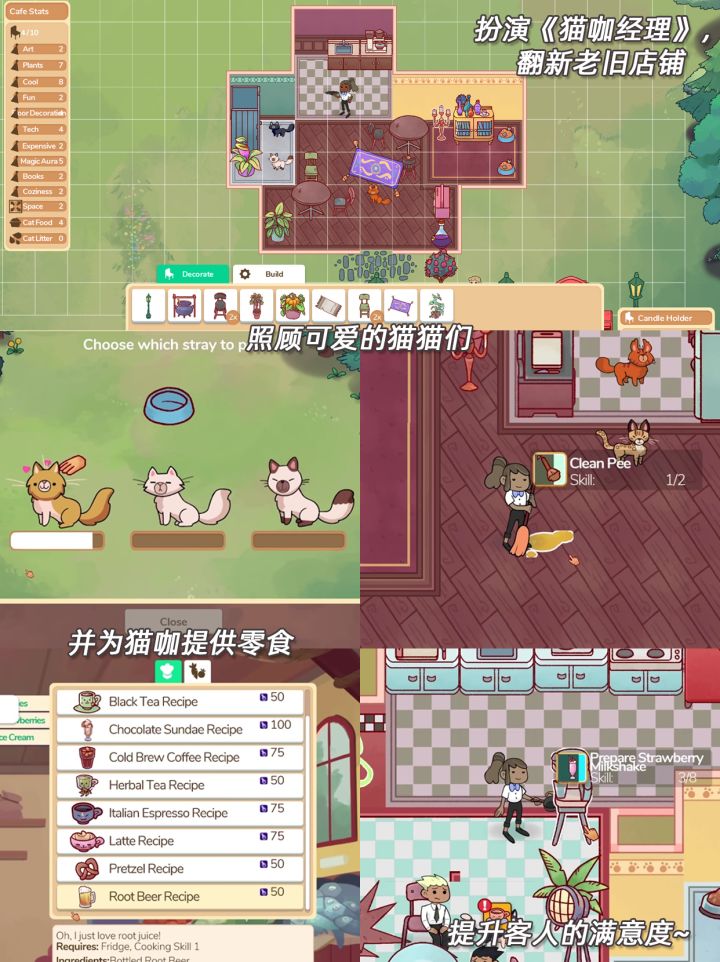 1⃣网红奶茶店设备:手机 | 平板平台:iOS | TapTap状态:已上线✅免费✅支持手机平板✅简介:意外从人类变成猫猫🐱,我竟然拥有了一家奶茶店❓从零开始研究奶茶配方,招募最强店员,并大力宣传我们的奶茶✨一起来打造最高人气的奶茶品牌吧!2⃣Project Hospital设备:电脑平台:Steam状态:已上线✅支持Mac✅简介:成为院长经营医院🛏设计医院每处建筑的细节,招聘合